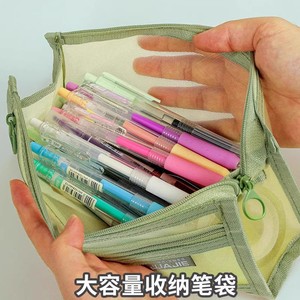 三角形透明网纱笔袋学生考试专用文具袋双层立体大容量文具盒考试