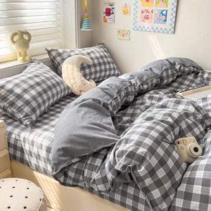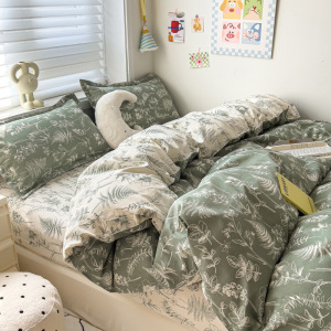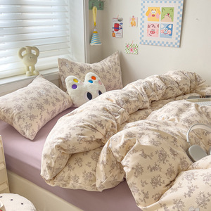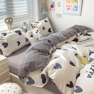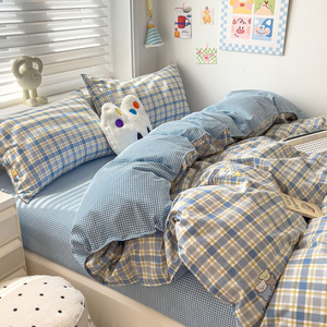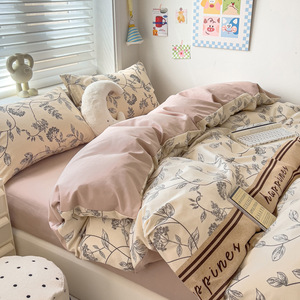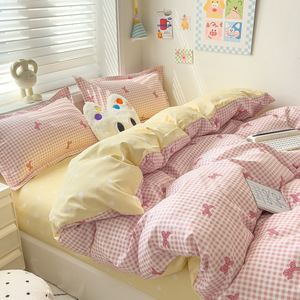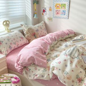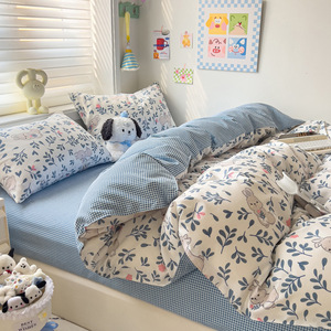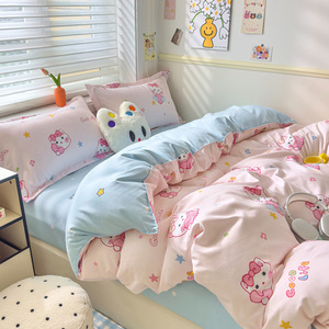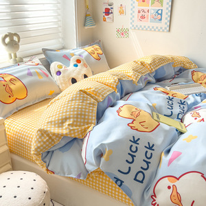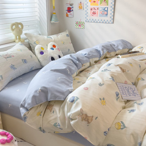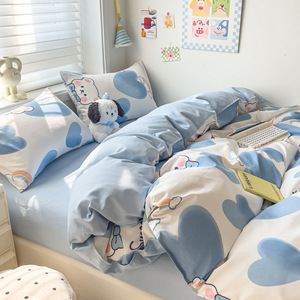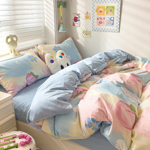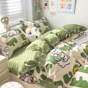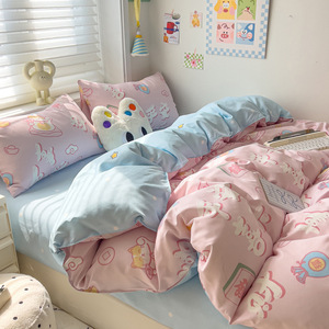 A类母婴级ins卡通被套四件套纯棉加厚水洗棉床单款全棉宿舍三件套