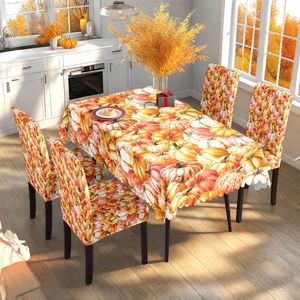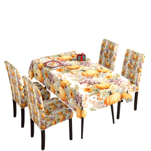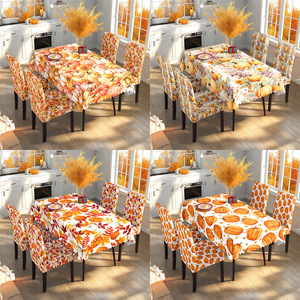 工厂批发感恩节餐桌台布枫叶南瓜印花餐厅秋收节日桌布椅套