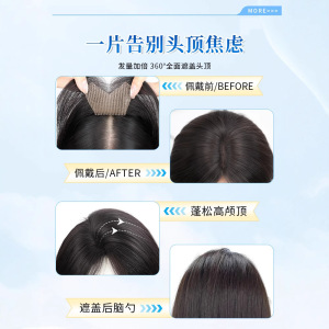 假发片女防真人发轻薄透气手织补发片遮白增发蓬松高颅顶假发片