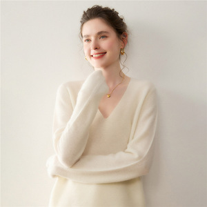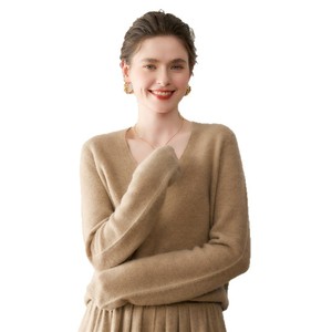 2025年秋季常规套头单件长袖落肩袖V领时尚百搭通勤