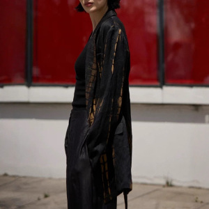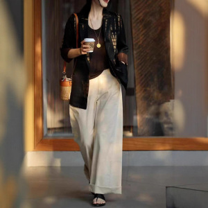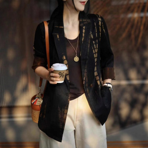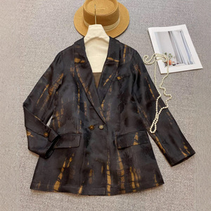 2025年秋款篙品质真丝香云纱显瘦通勤西装外套中长款复古时尚西服
