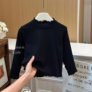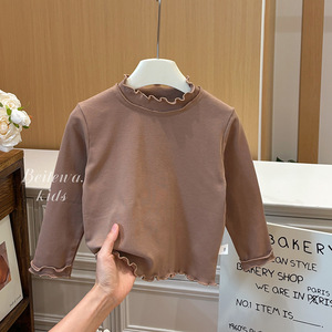 新款女童春秋百搭花边纯色打底衣女宝宝韩版休闲时尚洋气打底衫