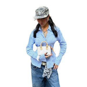 高街美式露背镂空设计收腰衬衫休闲辣妹女装条纹长袖开衫衬衣新款