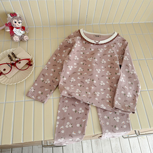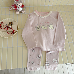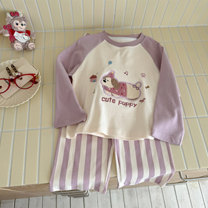 甜小司儿童家居服套装秋季新款撞色插肩袖卡通纯棉睡衣睡裤两件套