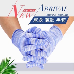 工厂供应白色13针薄款尼龙手部电子厂灰色黑色花色无尘防静电手套