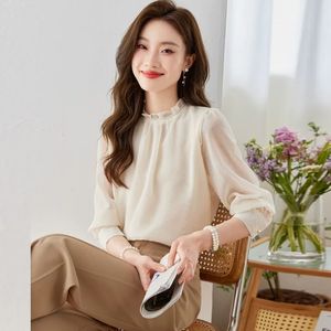 法式感气质雪纺上衣女春秋新款小个子小衫长袖别致白衬衫