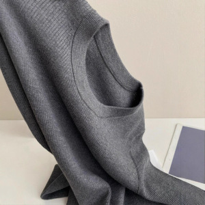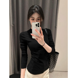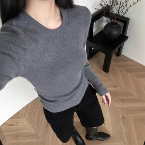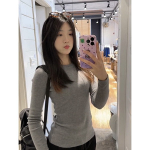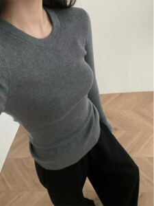 深灰色针织打底衫女秋冬穿搭高级感超好看的内搭毛衣圆领长袖上衣