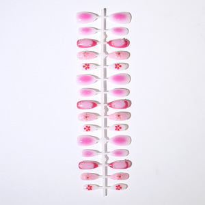 30pcs跨境热销杏仁穿戴甲简约风粉红色假指甲立体花朵腮红假指甲