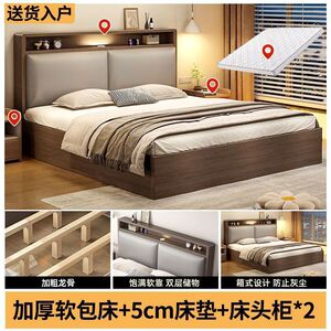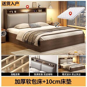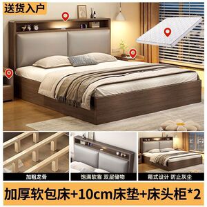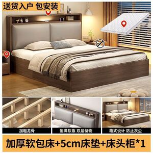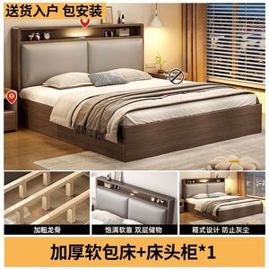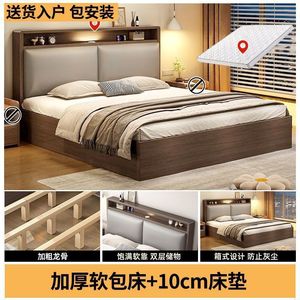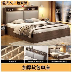 实木床双人1.8x2米主卧大床家用1.5米小户型出租房1.2m储物单人床