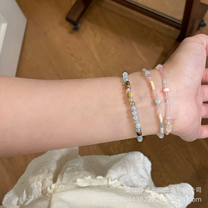 夏季气质米珠新中式天然蓝色方解石手串细款叠戴百搭手饰小众精致