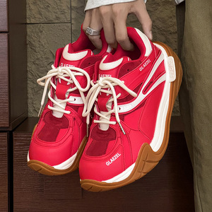 明星同款红色厚底德训鞋女休闲情侣潮鞋复古百搭运动鞋子2139