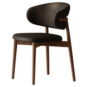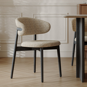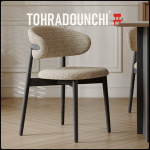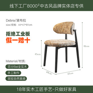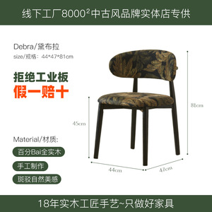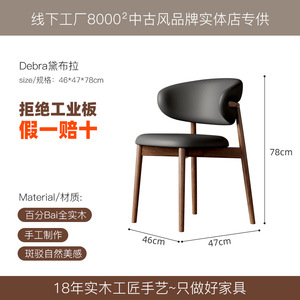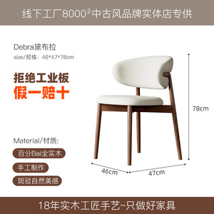 法式复古风实木靠背餐椅现代简约餐厅凳子北欧中古真皮休闲椅子