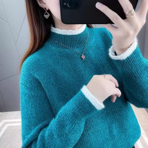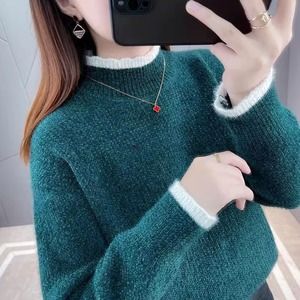 2025秋冬新款毛衣女雪尼尔半高领宽松套头纯色加绒厚款针织衫上衣