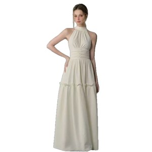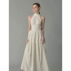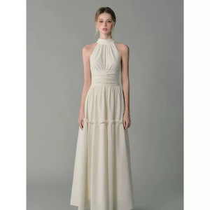 法式新款高级感挂脖连衣裙女夏季设计感无袖褶皱收腰显瘦气质长裙