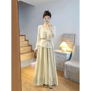 开春穿搭套装女大码胖mm显瘦上衣半身裙子韩系温柔独特漂亮套装女