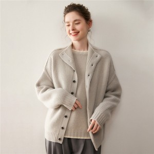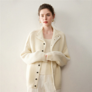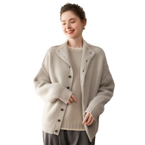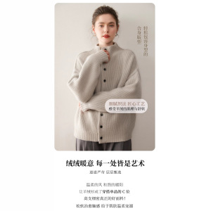 2025秋冬新款加厚女士羊绒衫半高领单排扣开衫慵懒枫落肩袖