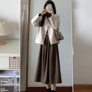 春装女搭配一整套气质斗篷毛呢外套半身裙高级感盐系穿搭两件套装