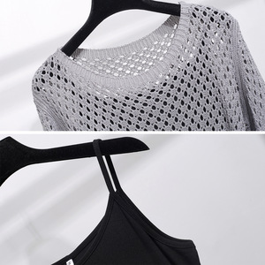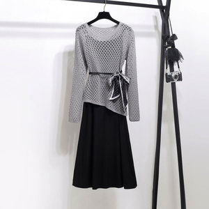 吊带连衣裙女2025新款秋季高级感小个子外搭针织镂空罩衫两件套装