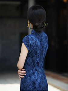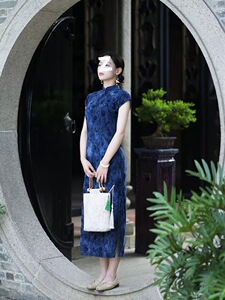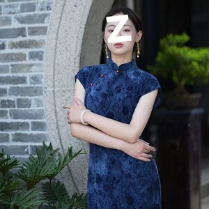 蓝色旗袍新中式改良连衣裙夏季大码有弹显瘦日常2025新款