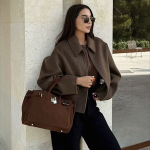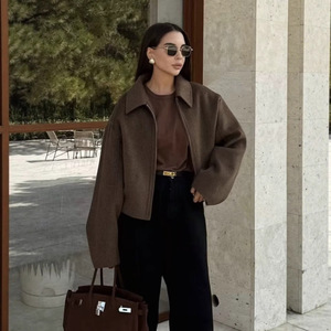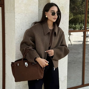 2024秋季时尚三色纯色阔型拉链毛呢外套跨境亚马逊女装B88780