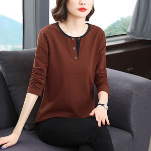 长袖恤女装2025春秋季新款洋气妈妈体恤大码宽松内搭上衣打底衫
