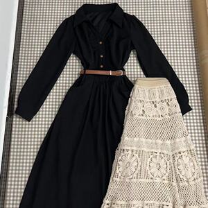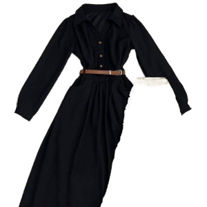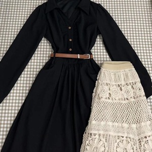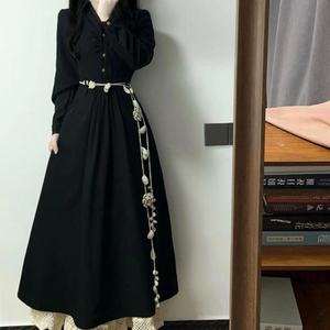 秋冬新款中长款长袖纯色POLO领连衣裙女学生学院风韩版宽松A字裙