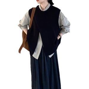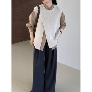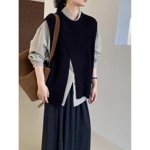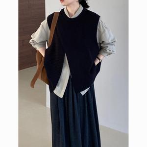 秋季2025新款马甲开叉设计圆领毛衣背心复古显瘦长袖衬衫两件套装