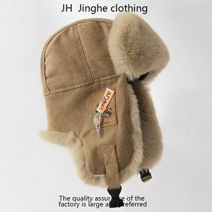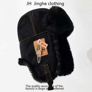 冬季雷锋帽男女潮加厚防风保暖护耳骑车帽毛绒贴布链条飞行棉帽子