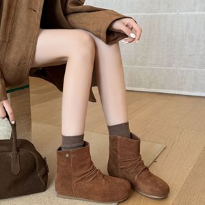 MARCO&JOYCE复古慵懒风堆堆西部骑士靴2025新款圆头短筒靴子女款