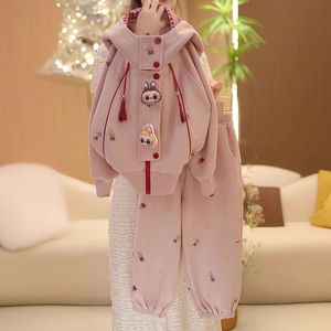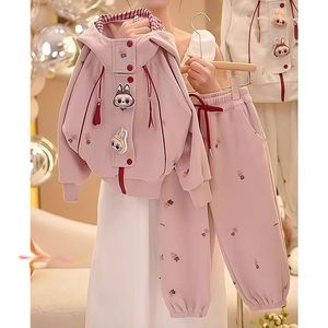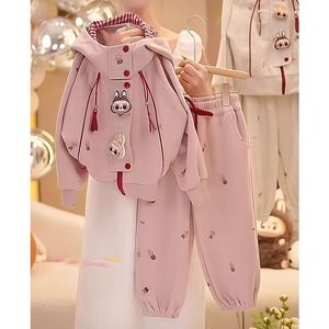 女童韩版2025新款洋气秋装宝宝上衣连帽卡通休闲春秋套装