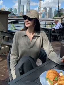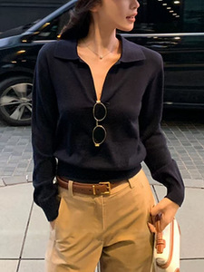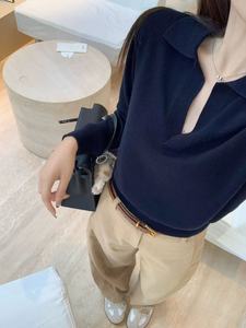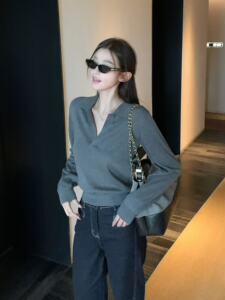 高智淡人毛衣 韩系复古老钱风Polo领针织衫女慵懒休闲V领长袖上衣