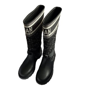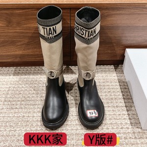 高配版~刺绣字母长靴女冬季复古高筒靴子瘦瘦靴厚底不过膝骑士靴