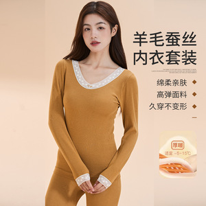 秋冬羊毛蚕丝套装秋衣秋裤套装舒适美体无痕修身女士保暖内衣打底