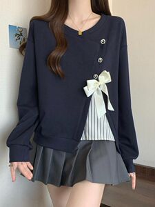 设计感假两件长袖卫衣女2025春秋季蝴蝶结宽松独特别致超好看上衣