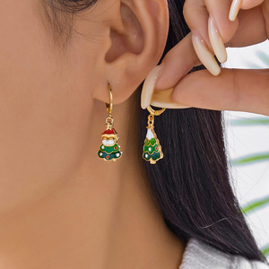 跨境新款合金水钻圣诞树耳钉多款颜色时尚百搭圣诞节耳环礼物批发
