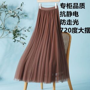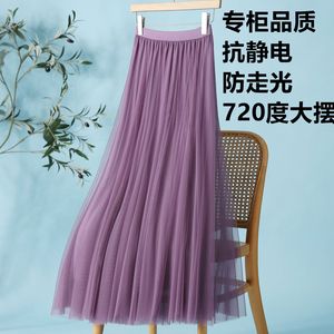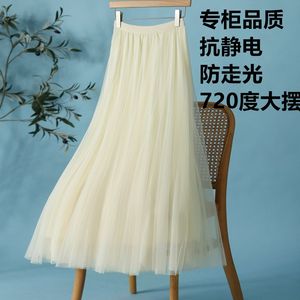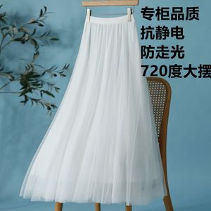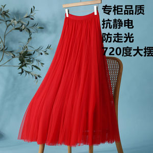 网纱720度大摆广场舞新款大舞蹈裙纱裙半身裙中长款a字板裙子跨境