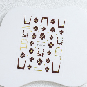小红书网红爆款复古甜美风鎏金秋冬法式花朵豹纹烫金指甲贴纸饰品
