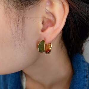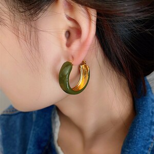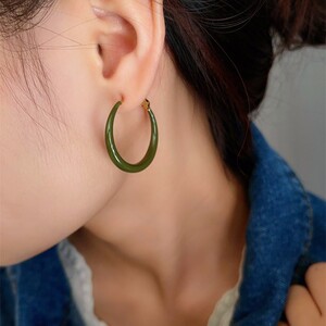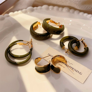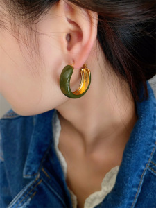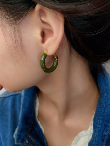 复古滴油橄榄绿耳环时尚通勤耳圈电镀18K真金INS风秋冬新款耳饰品