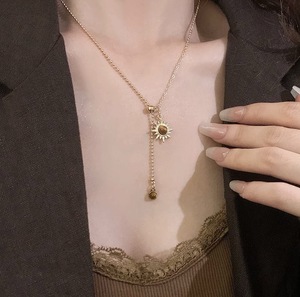 时尚优雅太阳花流苏抽拉可调节项链个性精致冷淡风小众毛衣链女