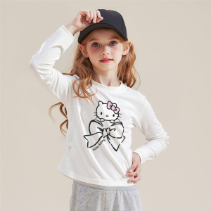 HelloKitty女童秋季t恤2025新款凯蒂猫卡通印花中大童装套头上衣