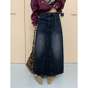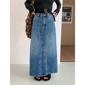 ICC 洗水猫须开叉复古a字显瘦牛仔半身裙女广州十三行新款10302
