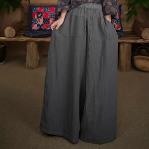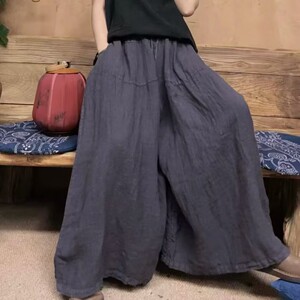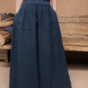 2025秋季新款亚麻阔腿长裤九分裤休闲裤子文艺复古
