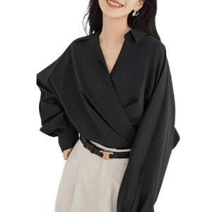设计小众衬衫女秋装新款法式领衬衣高档气质简约别致通勤上衣