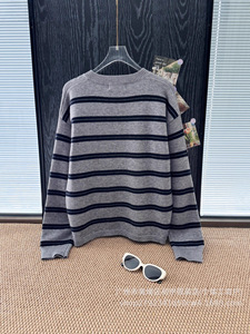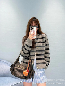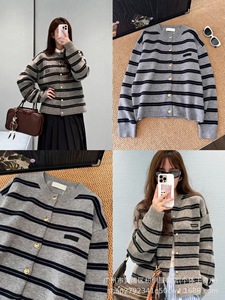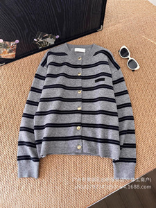 高版本~mi*缪家2025早秋新款条纹金属纽扣长袖开衫针织毛衣外套女