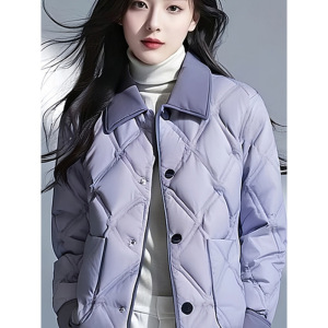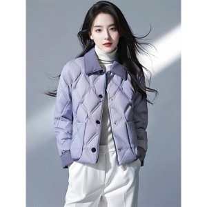 紫色翻领超好看菱格短款外套棉服女年新款冬季洋气小棉袄外套