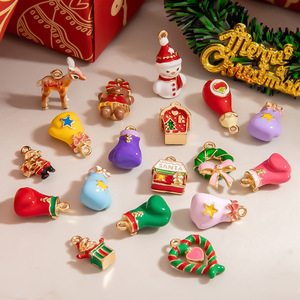 跨境圣诞饰品配件冬日氛围雪人小屋圣诞老人礼盒DIY手工项链吊坠