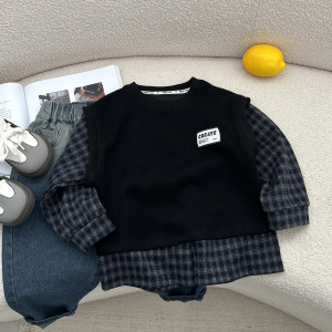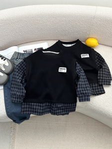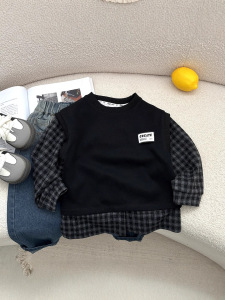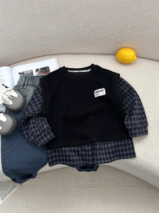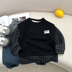 帅气男宝宝童装秋韩版款格子衬衫马甲长袖小童外出单件潮卫衣