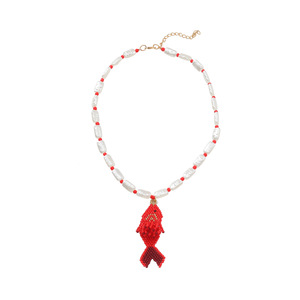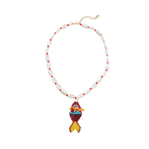 ZA欧美夸张小鱼米珠手工编织仿珍珠项链串珠吊坠高级感choker项饰