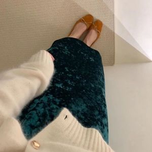2025金丝绒丝绒中长裙秋冬新款复古加绒显瘦加厚洋气半身裙潮